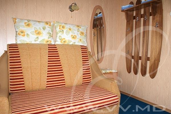 Nova de pasageri renovate pentru a vă oferi o vacanță de primă clasă! Cabinele confortabile pentru două foarte confortabile și dotate cu tot ce ai nevoie - canapele cu ușurință convertite într-un pat plin dublu, mochetă, iluminat moale, oglindă, noptiere și un cuier. Dacă doriți, puteți alege cabinele estezhe schema de culori, piersici sau tonuri de albastru.